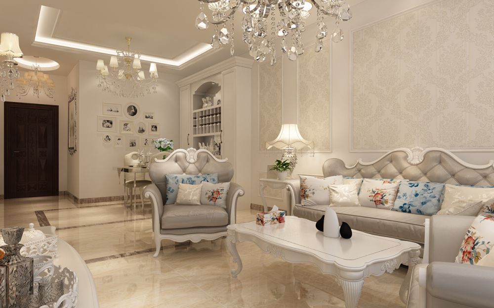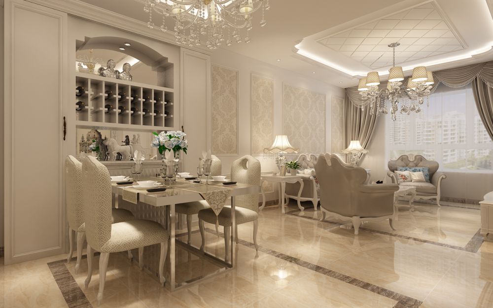 • 設計說明: 1、客廳:以淺米色與珍珠粉為主,一改傳統(tǒng)的沉靜而帶入了陽光似的青春活力。 2、餐廳:顏色以深淺相互襯托,在硬裝方面采用淺色系,餐桌椅則選擇了局部深色,使之與整個空間的色調相輔相成。 3、臥室:正對入戶墻面以白色為主,局部采用帶有鳥語花香的壁紙,更加親近自然,散發(fā)著迷人的魅力