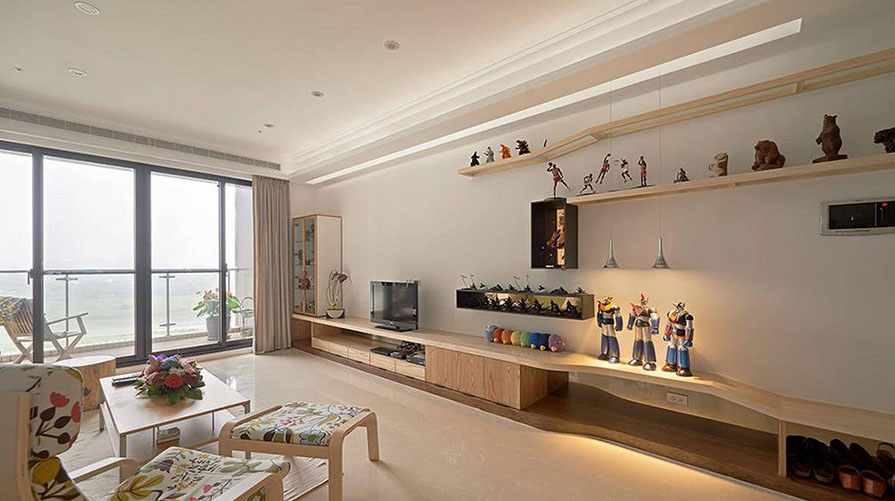 • 以北歐風(fēng)格的生活質(zhì)感為基礎(chǔ),挹注大量木質(zhì)紋理的溫暖,搭配上明亮色彩的燈飾、沙發(fā)點(diǎn)綴,簡約又不失活力與朝氣。而為了能展示屋主多年收藏的玩具、公仔,設(shè)計(jì)師也在各空間中打造醒目的開放式平臺(tái),讓居住者喜愛的事物,能夠成為生活上的一大焦點(diǎn)。